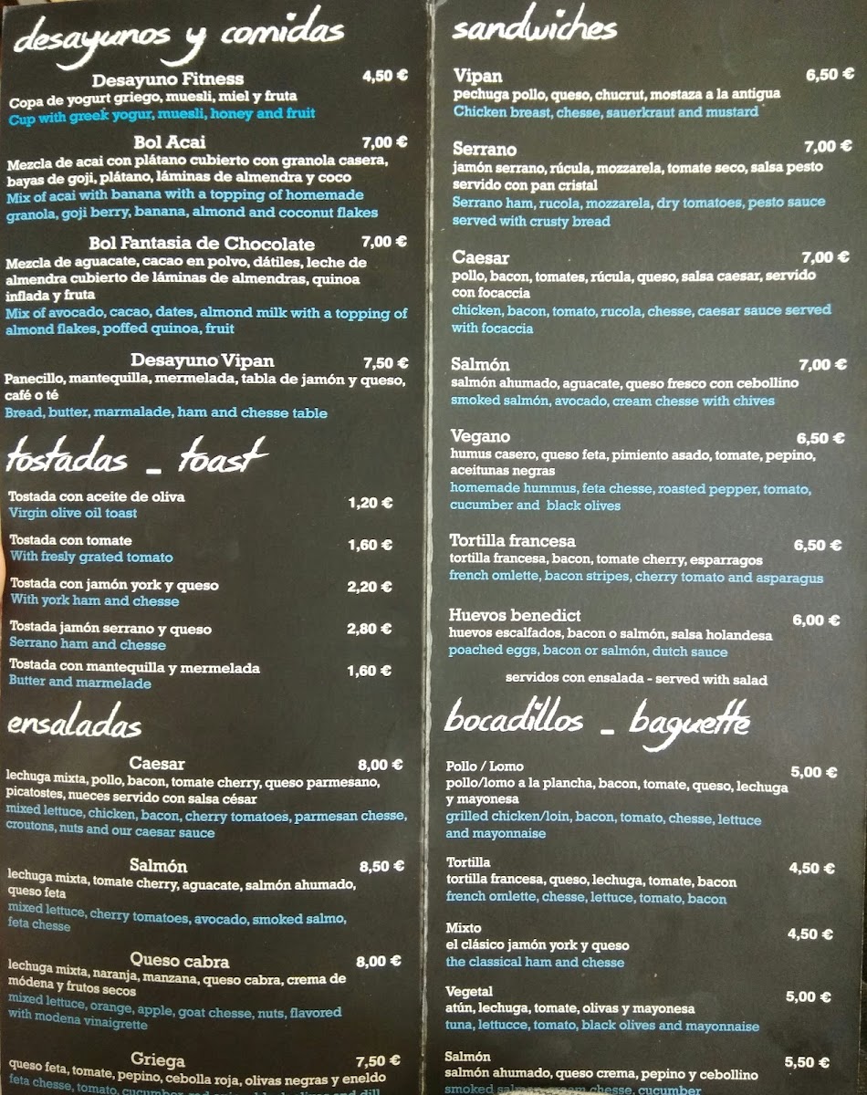 Cafetería Vipan Menu